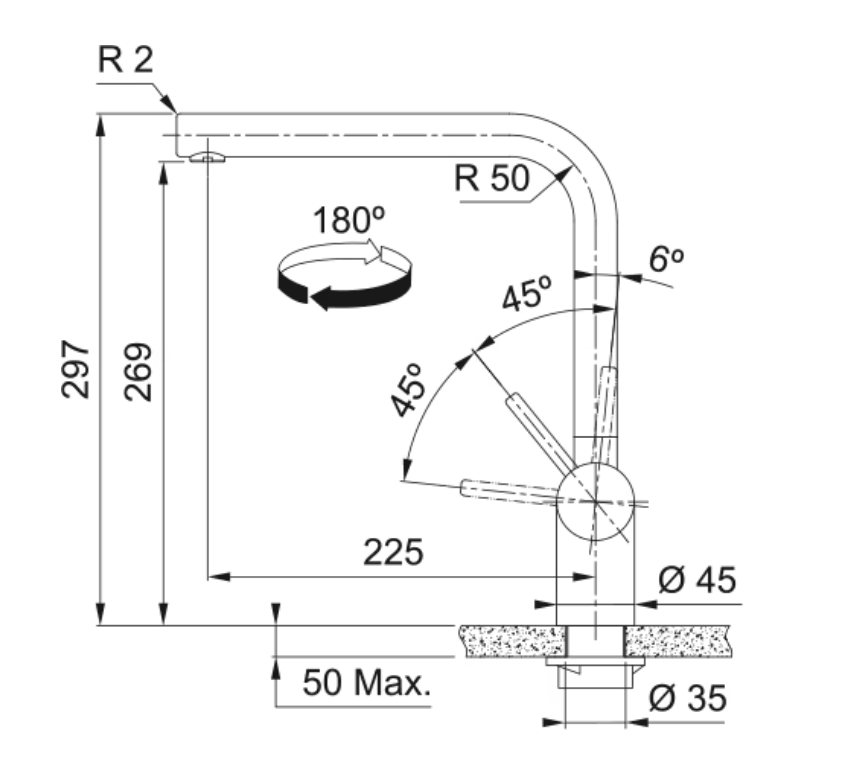 Zwenkbereik 180 °