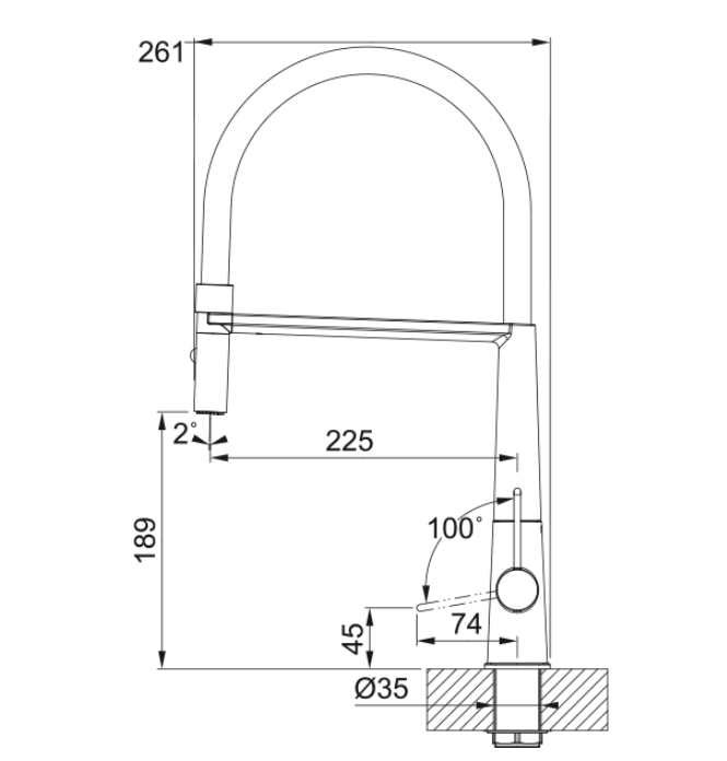 Hoogte tot uitloop: 189.00 mm