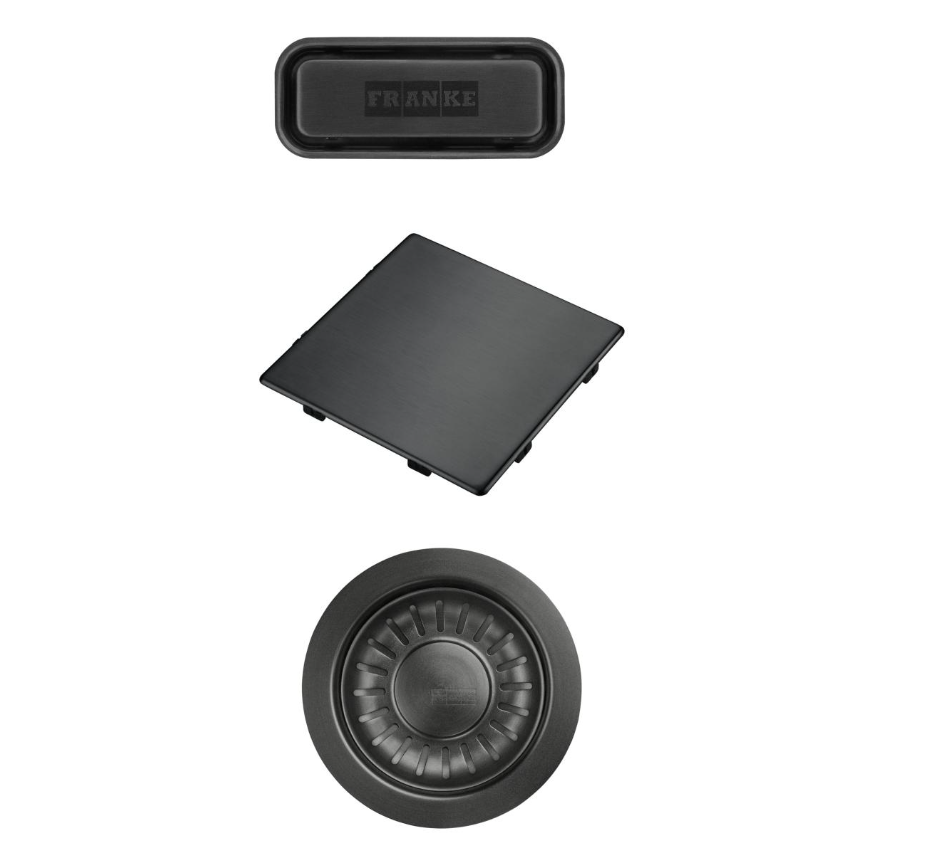 Franke kleur set in de kleur gun metal speciaal gemaakt om de Franke Kubus 2.0 granieten spoelbakken naar u wens af te maken.