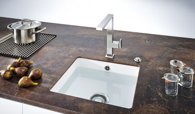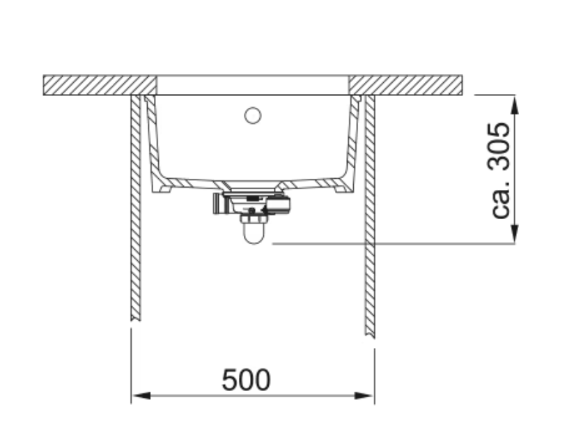 Doordat de Fraceram spoelbakken gebakken worden zijn deze niet 100% maatvast. uitsparing op basis van geleverde spoelbak te gebruiken