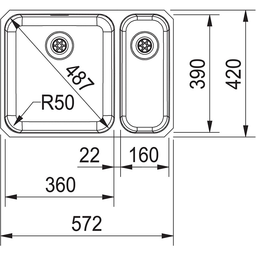 Home RVS Spoelbak Franke Largo 36 x 39 +16 x 39 LAX 160 SBR 122.0257.093 Anderhalve Keukenspoelbak Links RVS Onderbouw 1220257093