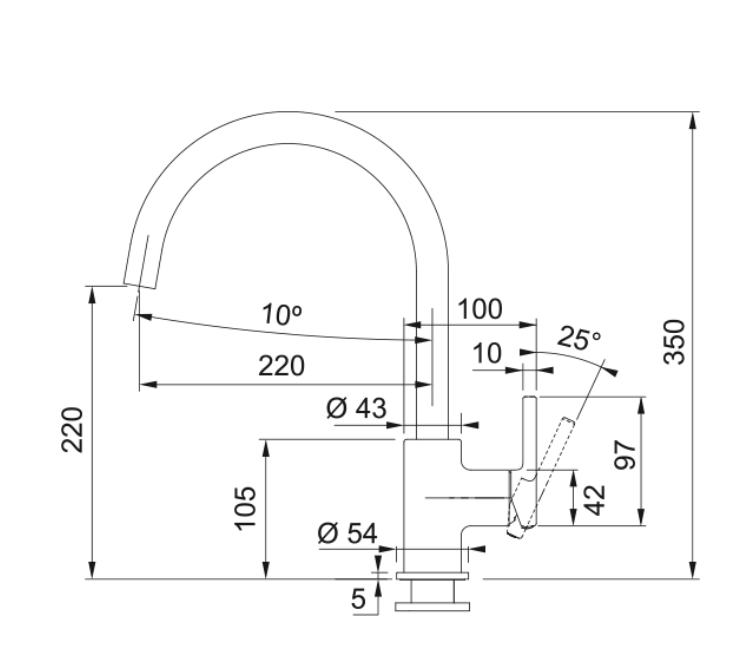 Hoogte tot uitloop: 220.00 mm