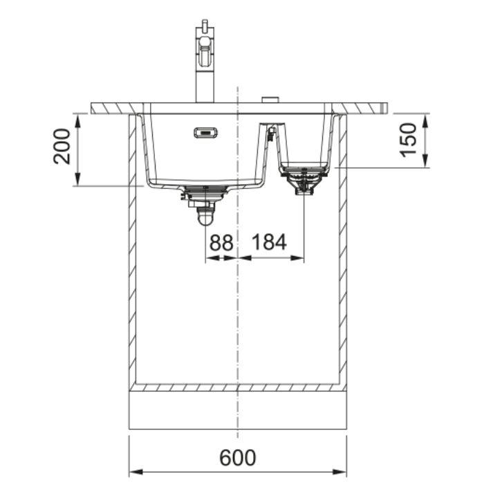 - Kastmaat 600 mm