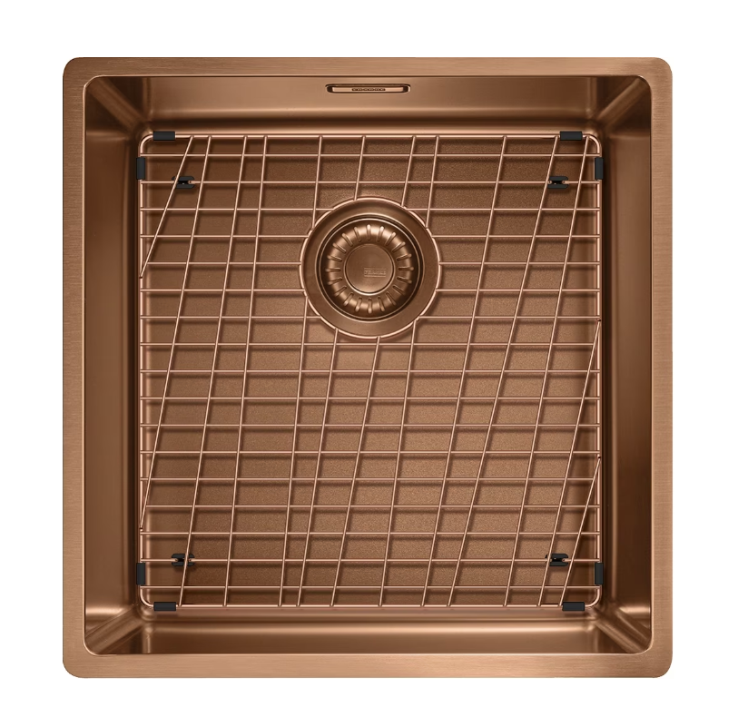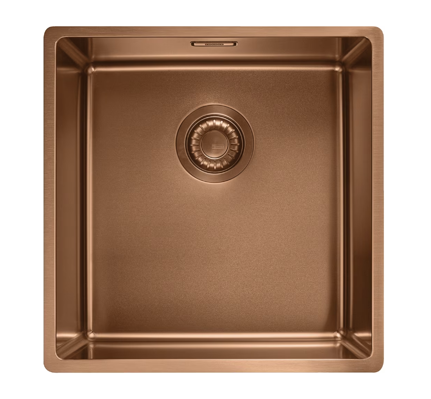 Mythos Masterpiece BXM 210/110-40 is een enkele rvs spoelbak in de kleur Copper met een afmeting van 400x410x200 mm, geschikt voor vlak inbouw en onderbouw. De spoelbak is voorzien van een koper 3 1/2″ afvoerplug met koper design overloop. Tevens is de spoelbak standaard voorzien van een Copper bodemrooster. De BXM spoelbakken zijn voorzien van een PVD kleur en F Inox coating, voor een waterafstotend effect en meer kras- en temperatuurbestendigheid.