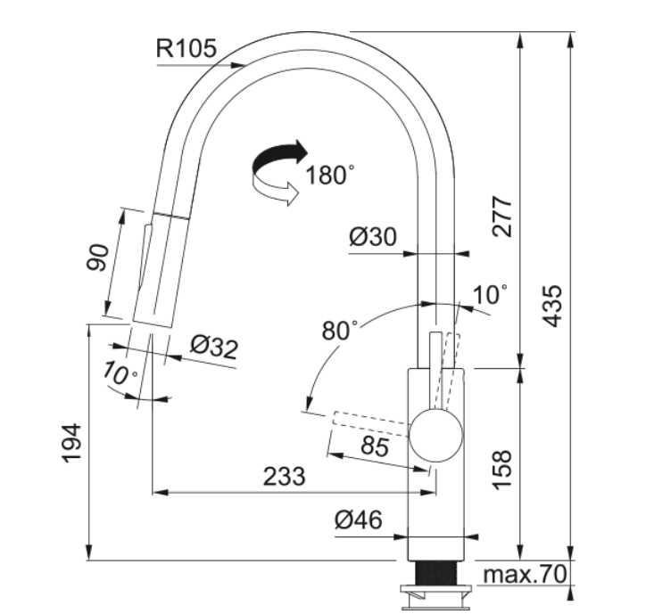 Hoogte tot uitloop: 194.00 mm