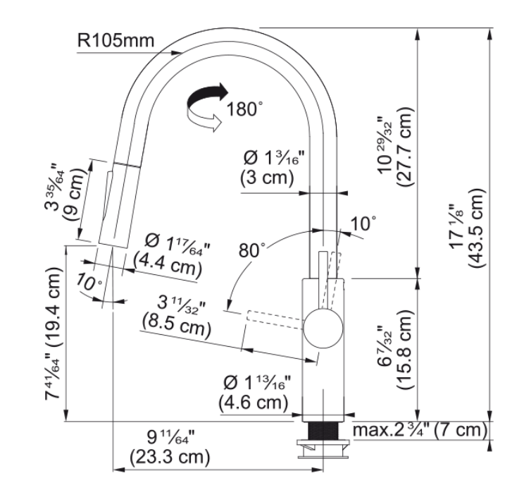 Zwenkbereik 180 °