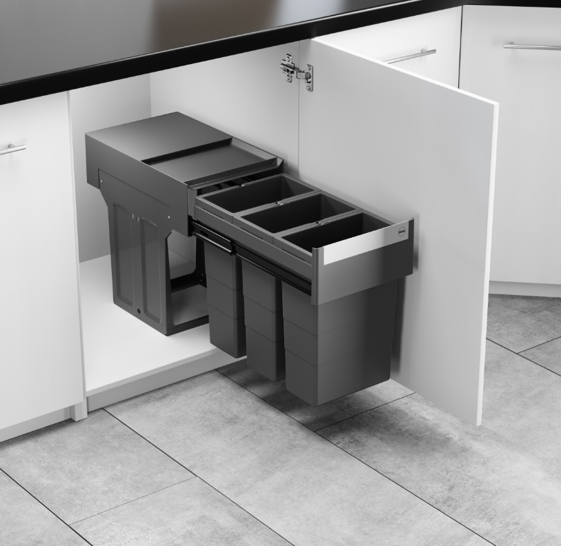 De Tandem 8/8/8 is ideaal voor keukens die efficiënte afvalscheiding vereisen zonder te veel ruimte in beslag te nemen. De drie verwijderbare bakken maken het eenvoudig om afval, recyclables en compost te scheiden, terwijl de soepele, volledig uitschuifbare schuiven zorgen voor moeiteloze toegang elke keer weer.