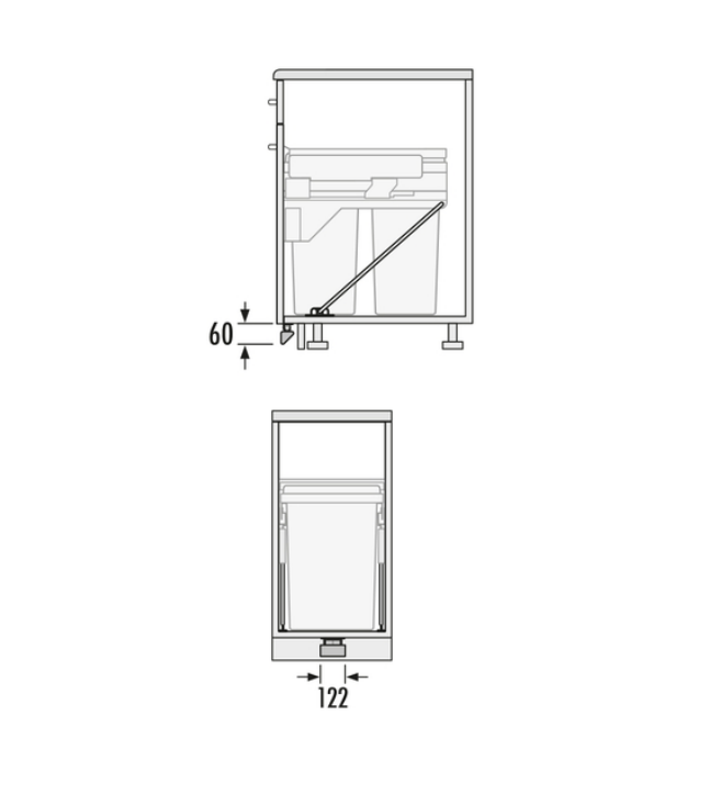 De afvalemmer rolt met behulp van het Hailo Kick & Go voetpedaal automatisch naar buiten na een druk op het pedaal (apart bestellen).
