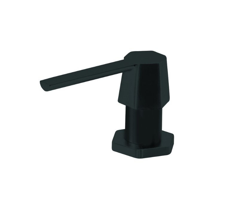 Zeepdispenser bijpassend bij de Osiris Hexagon kranen, verkrijgbaar in uitvoeringen rvs, gun metal, copper, gold en sturdy black pvd.