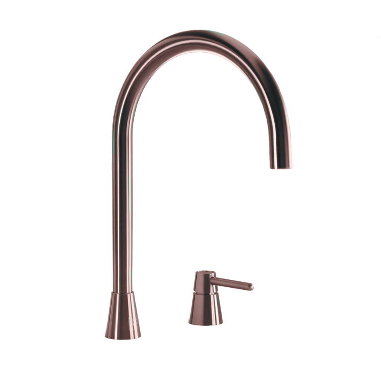 De Lanesto cone counter is een 100% geborsteld rvs keukenmengkraan die met een hendel zowel koud als warm water bedient. De kraan is verkrijgbaar in standaard rvs en een pvd coating in de kleuren gun metal, copper en gold. Dankzij het design en de kleur kunt u alle uitvoeringen uitstekend combineren met andere artikelen zoals spoelbakken, verlichting en zeepdispensers.
