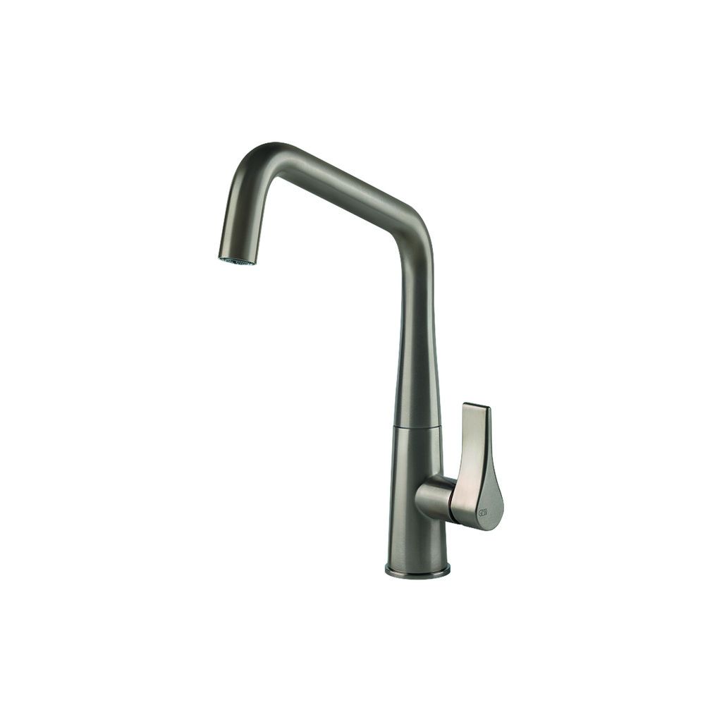 De Lanesto Conic haaks is een messing keukenmengkraan die met één hendel zowel koud als warm water bedient. De kraan is verkrijgbaar in chroom en een pvd coating in de kleur rvs. Dankzij het design en de kleur kunt u de pvd uitvoering uitstekend combineren met andere artikelen zoals spoelbakken, verlichting en zeepdispensers.