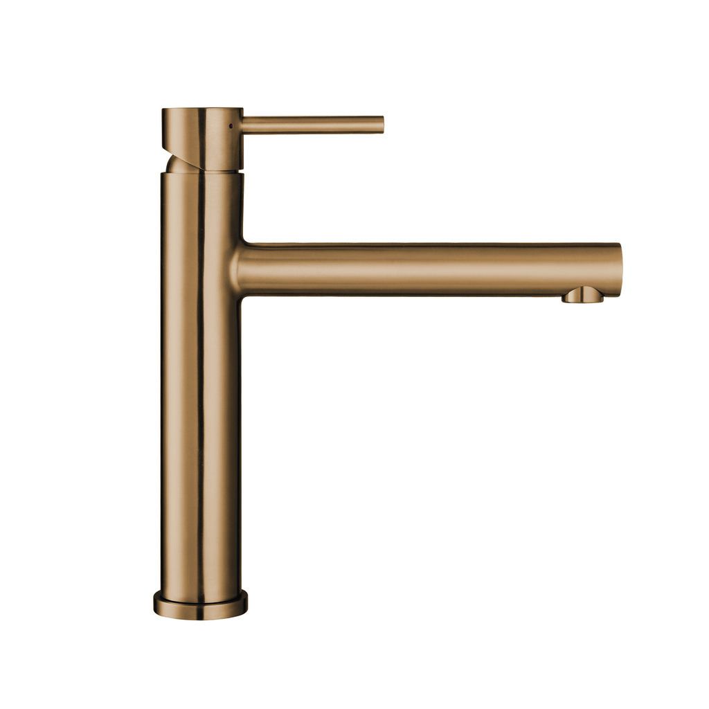 De Lanesto Cucina is een 100% geborsteld rvs keukenmengkraan die met één hendel zowel koud als warm water bedient. De kraan is verkrijgbaar in standaard rvs en een pvd coating in de kleuren gun metal, copper en gold. Dankzij het design en de kleur kunt u alle uitvoeringen uitstekend combineren met andere artikelen zoals spoelbakken, verlichting en zeepdispensers.