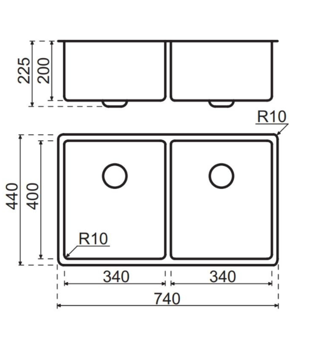 Deze Lanesto Destra spoelbak is een rechthoekige spoelbak met twee bakken in de kleur RVS en is ook gemaakt van het materiaal RVS. De Voormaat is 60 mm en de minimale kastbreedte is 800 mm. Deze uitvoering van de Destra is een inlegspoelbak met een afmeting van 340 x 400 + 340 x 400. De spoelbak is compleet met Magna- en korfplug en luxe wandoverloop. Er is geen kraangaat mogelijk.