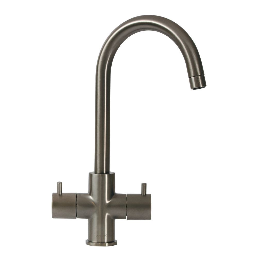 De Lanesto DUE is een messing keukenmengkraan die met twee hendels zowel koud als warm water bedient. De kraan is verkrijgbaar in chroom en een pvd coating in de kleur rvs. Dankzij het design en de kleur kunt u de pvd uitvoering uitstekend combineren met andere artikelen zoals spoelbakken, verlichting en zeepdispensers.