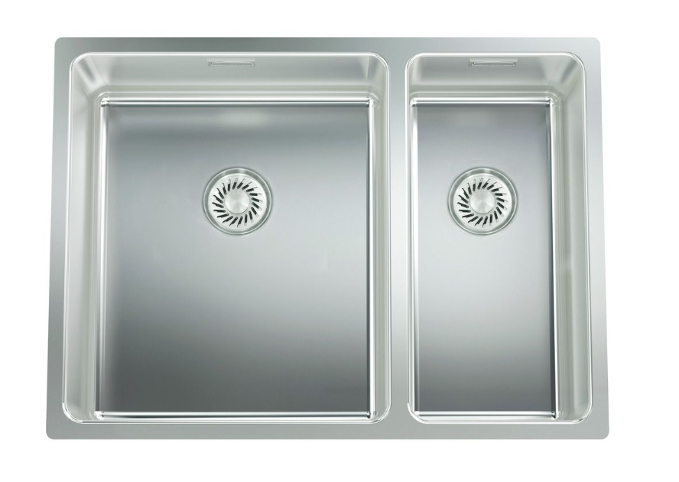 Deze Lanesto Giro spoelbak is een rechthoekige spoelbak met twee bakken in de kleur RVS en is ook gemaakt van het materiaal RVS. De Voormaat is 60 mm en de minimale kastbreedte is 700 mm. Deze uitvoering van de Giro is een inlegspoelbak met een afmeting van 340 x 400 mm + 170 x 400. De spoelbak is compleet met Magna- en korfplug en luxe wandoverloop.