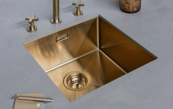 Deze Lanesto Urban spoelbak is een rechthoekige dubbele spoelbak in de kleur Goud en is gemaakt van het materiaal RVS. De Voormaat is 60 mm en de minimale kastbreedte is 700 mm. Deze uitvoering van de Urban is een inlegspoelbak met een afmeting van 340 x 400 mm + 180 x 400 mm. De spoelbak is compleet met korfplug en luxe wandoverloop.