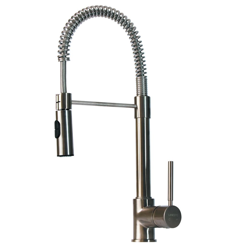 De Lanesto Ispra is een messing keukenmengkraan die met één hendel zowel koud als warm water bedient. De kraan is verkrijgbaar in chroom en een pvd coating in de kleur rvs. Dankzij het design en de kleur kunt u de pvd uitvoering uitstekend combineren met andere artikelen zoals spoelbakken, verlichting en zeepdispensers. Deze kraan beschikt over een flexibele uitloop die de kraan stijlvol en functioneel maakt. Met behulp van de flexibele uitloop zijn zaken als afwassen of het vullen van grote pannen een stuk eenvoudiger.
