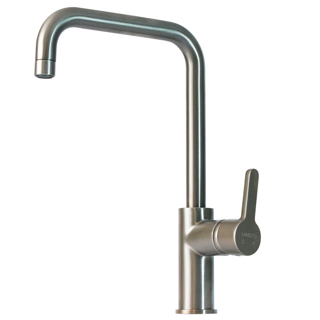 De Lanesto Mauro is een messing keukenmengkraan die met één hendel zowel koud als warm water bedient. De kraan is verkrijgbaar in chroom en een pvd coating in de kleur rvs. Dankzij het design en de kleur kunt u de pvd uitvoering uitstekend combineren met andere artikelen zoals spoelbakken, verlichting en zeepdispensers.
