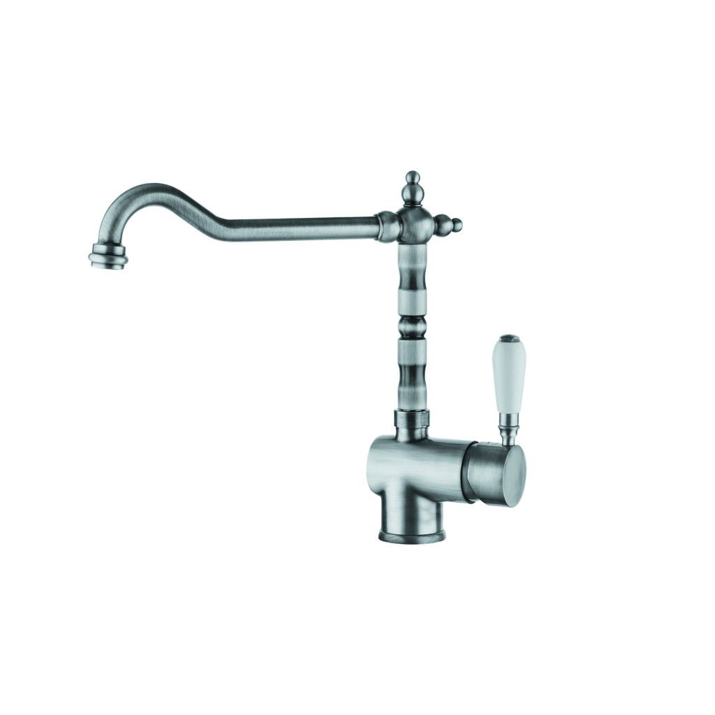 De Lanesto Oldmix is een messing keukenmengkraan die met één hendel zowel koud als warm water bedient. De kraan is verkrijgbaar in chroom en een pvd coating in de kleur rvs. Dankzij het design en de kleur kunt u de pvd uitvoering uitstekend combineren met andere artikelen zoals spoelbakken, verlichting en zeepdispensers.