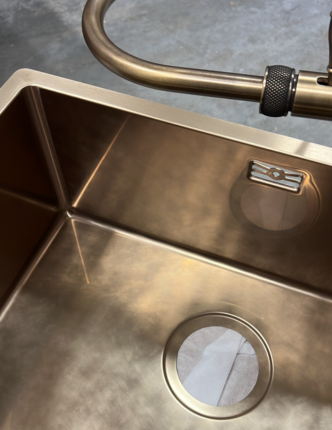 Deze Lanesto Urban spoelbak is een vierkante spoelbak in de kleur Patinated Brass en is gemaakt van het materiaal RVS. De Voormaat is 60 mm en de minimale kastbreedte is 500 mm. Deze uitvoering van de Urban is een inlegspoelbak met een afmeting van 400 x 400 mm. De spoelbak is compleet met korfplug en luxe wandoverloop.