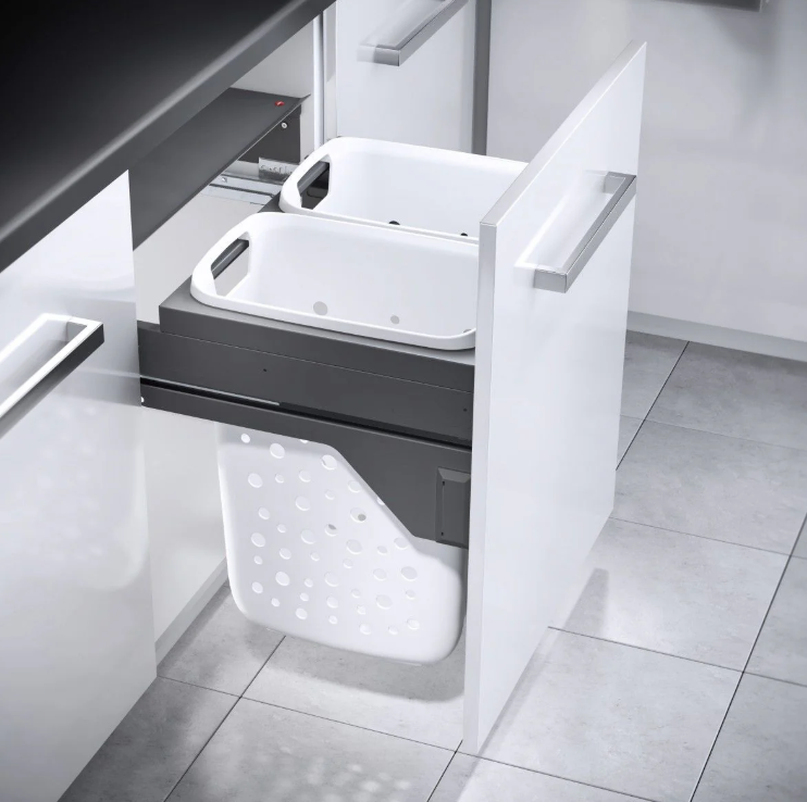 Maak je wasroutine eenvoudiger met de HAILO Laundry Carrier S 600, een premium dual-bin systeem ontworpen voor 60 cm brede basis-kasten. Met een soepel uittrekmechanisme en ruime capaciteit brengt dit systeem zowel gemak als stijl in moderne bijkeukens en keukens.