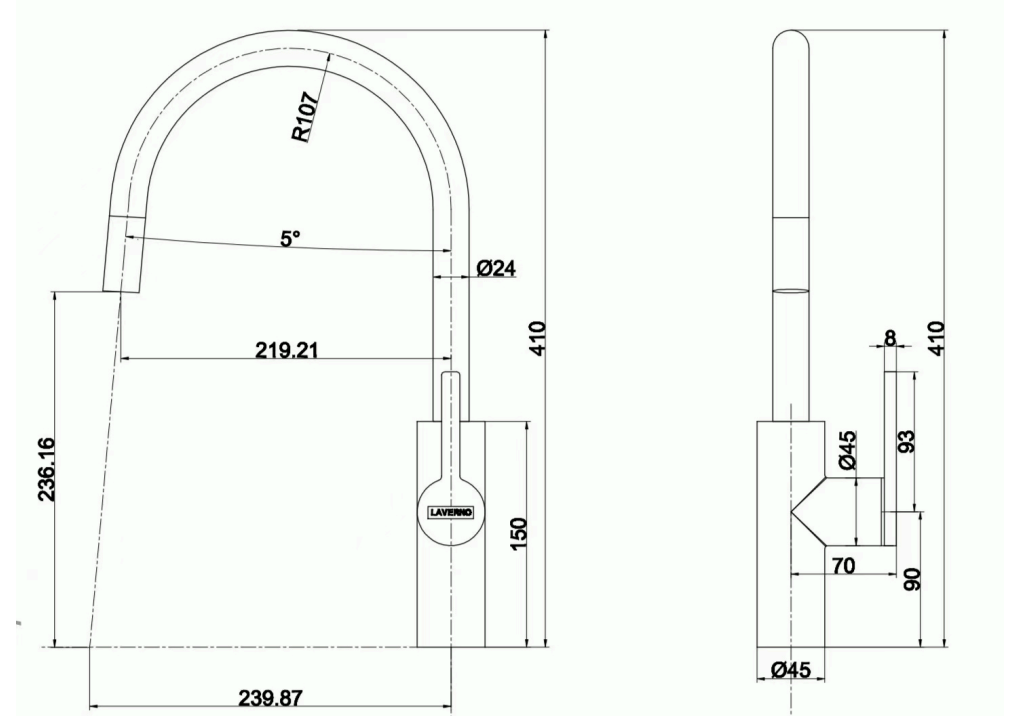 – Uitloophoogte van 410 mm en diepte van 236 mm voor optimaal gebruiksgemak