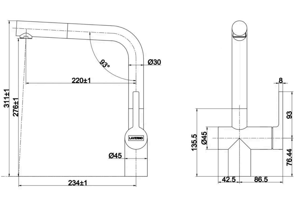 – Vaste, draaibare uitloop om elke hoek van je gootsteen te bereiken
