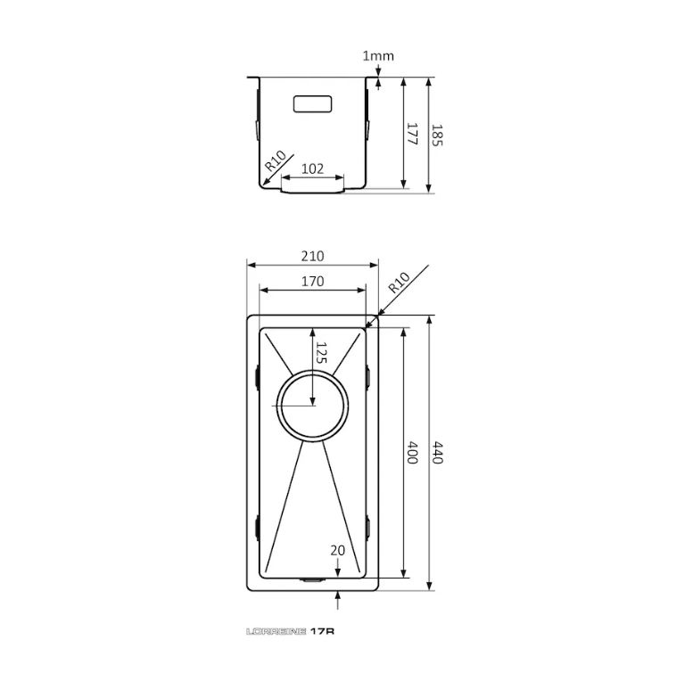 • in- en uitwendige hoekradius 10 mm