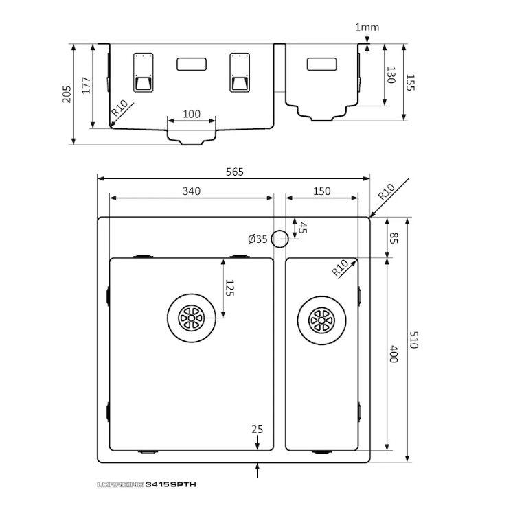 RVS spoelbak met Lorreine SuperPlug.