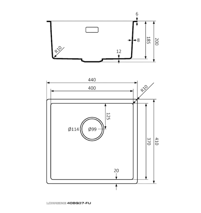 -FU = geschikt voor vlakinbouw en onderbouw (Flush, Undermount)
