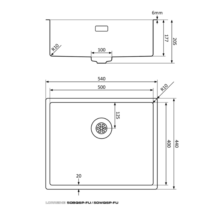 -FU = geschikt voor vlakinbouw en onderbouw (Flush, Undermount)