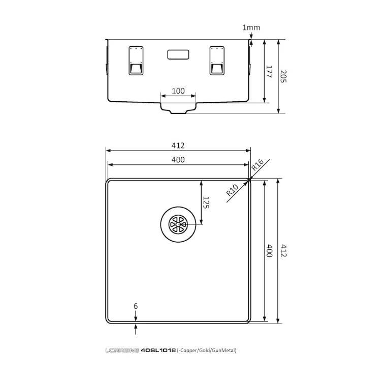 • buitenafmeting 412 x 412 mm