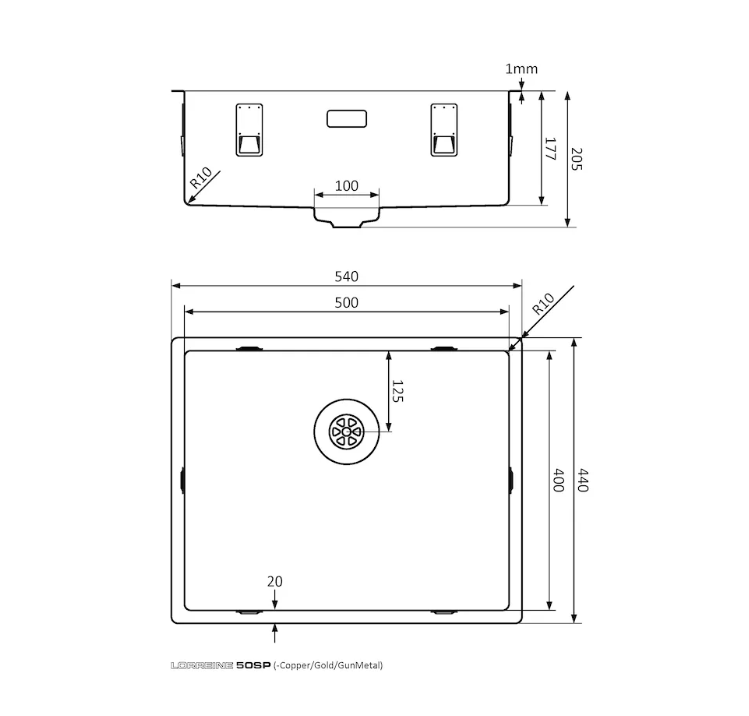 RVS spoelbak kleur afwerking in PVD coating met Lorreine SuperPlug.