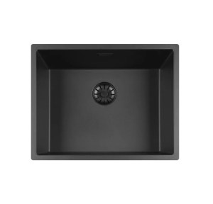 Eéngreeps zwarte keukenkraan met uittrekbare uitloop passend bij Lorreine Black Quartz Series spoelbakken