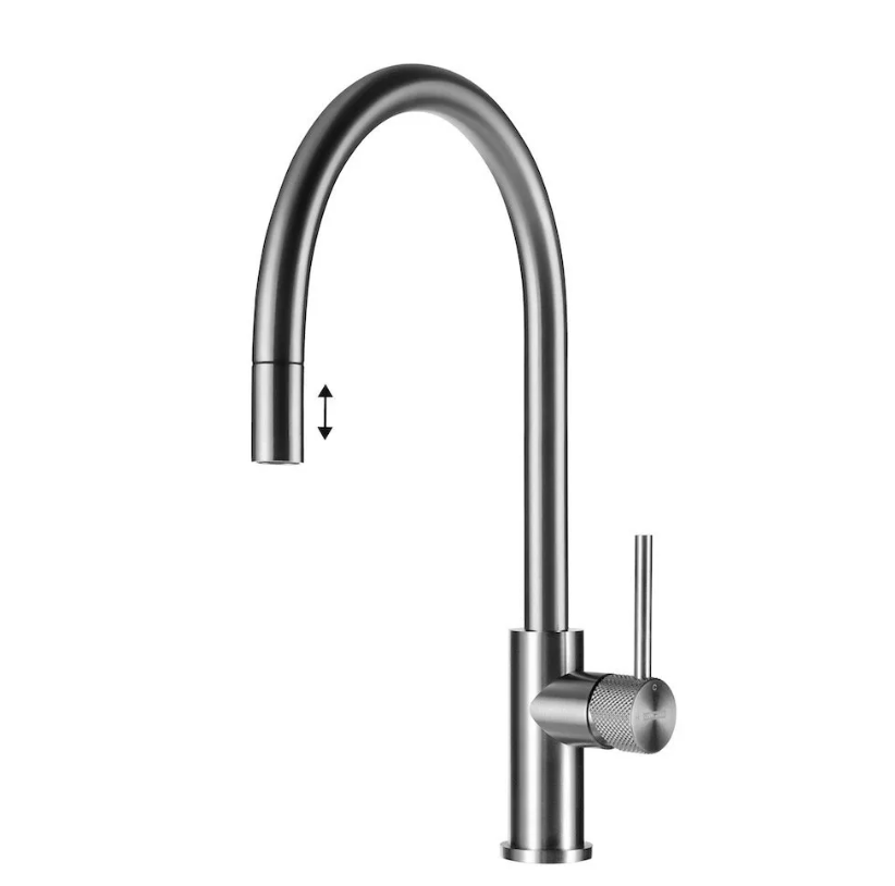 Eéngreeps RVS keukenkraan met uittrekbare uitloop passend bij alle Lorreine RVS spoelbakken