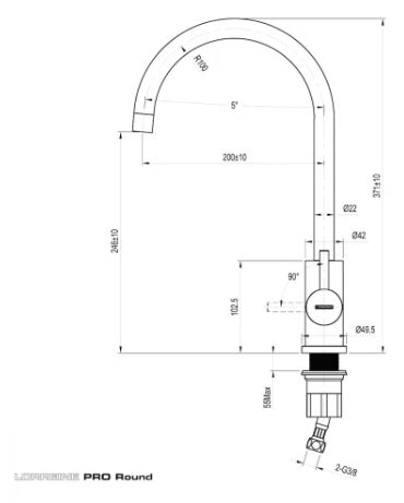 Eéngreeps RVS keukenkraan passend bij Lorreine PRO Series spoelbakken