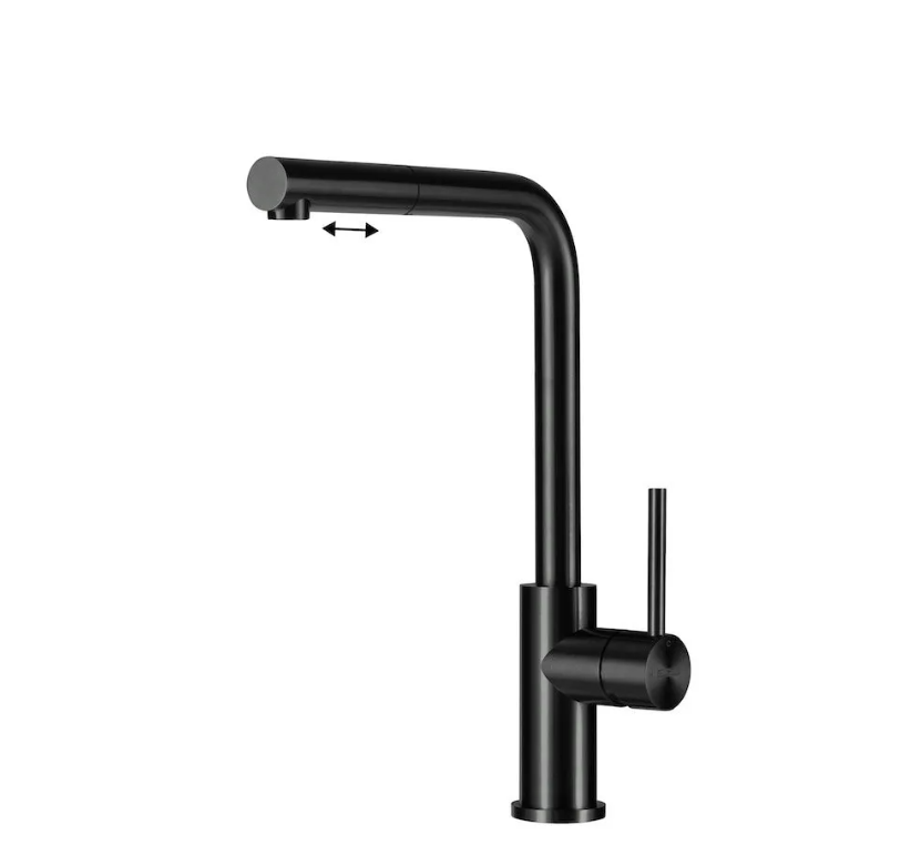 Eéngreeps zwarte keukenkraan met uittrekbare uitloop passend bij Lorreine Black Quartz Series spoelbakken