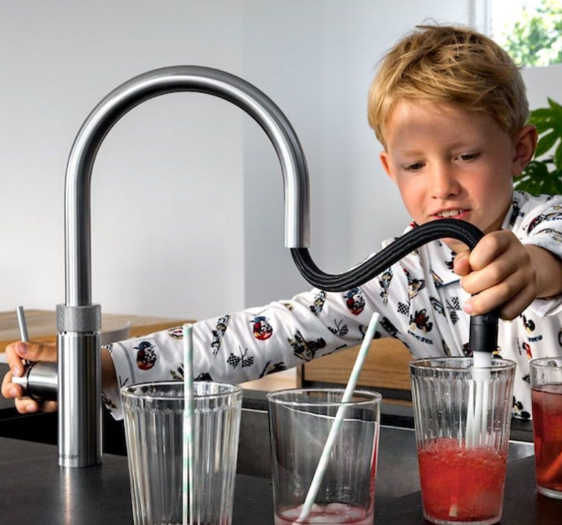Ook bij deze innovatie heeft Quooker weer uitgebreid nagedacht over de veiligheid. Zodra de slang is uitgetrokken kunt u geen kokend water tappen. Verder beschikt de kraan over de standaard veiligheidsvoorzieningen van Quooker: dubbele druk-draai bedieningsknop voor de kokend water functie, vernevelde straal, lichtring die aangaat als er kokend water uit komt, en een dubbelwandige uitloop waardoor u niet uw handen aan de uitloop kunt verbranden.