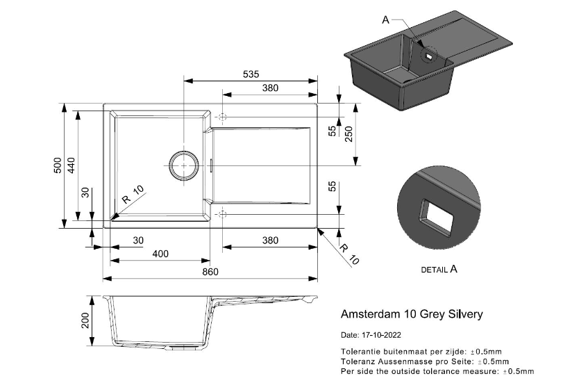 Totale afmeting: 860 x 500 x 200 mm