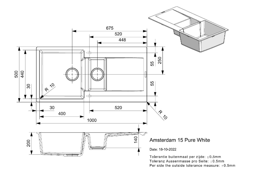 Totale afmeting: 1000 x 500 x 200 mm