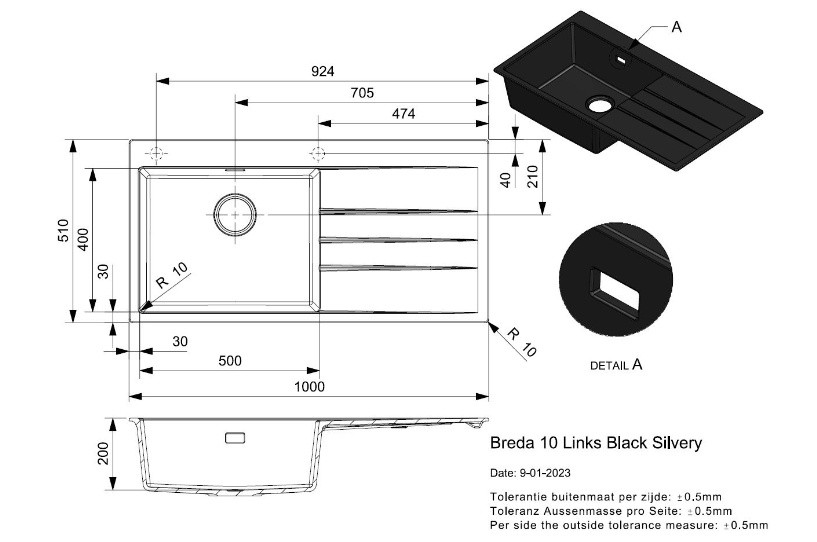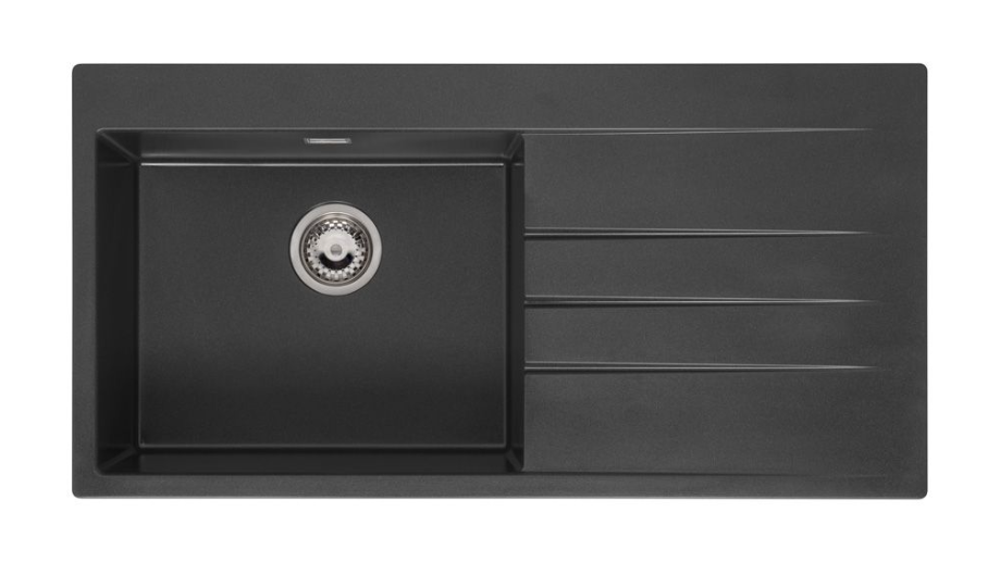 Reginox Breda 10 Black Silvery R33586 Enkele Keukenspoelbak Links Graniet Opbouw