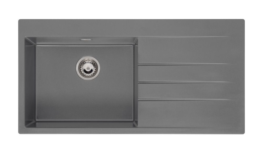 Reginox Amsterdam 54 Tapwing Grey Silvery R31056 Enkele Keukenspoelbak Graniet Opbouw