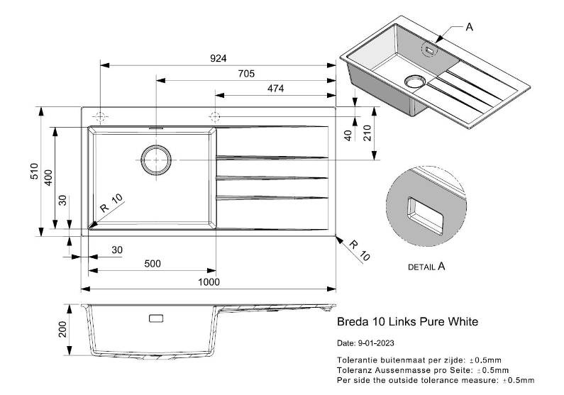 Totale afmeting: 1000 x 510 x 200 mm