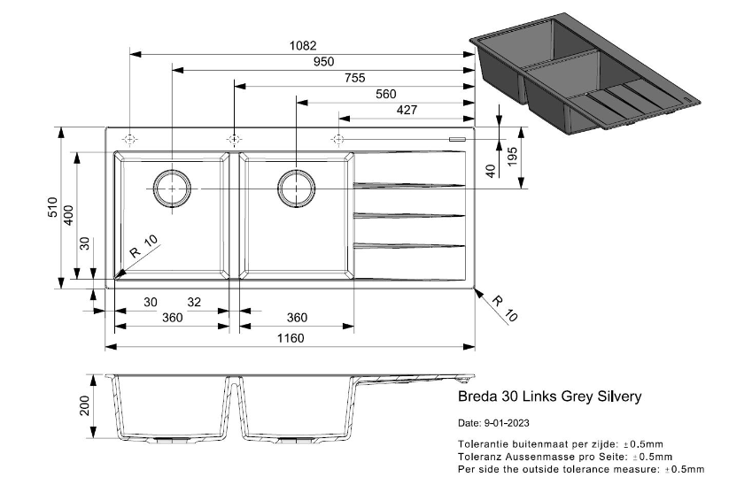 Spoelbak links