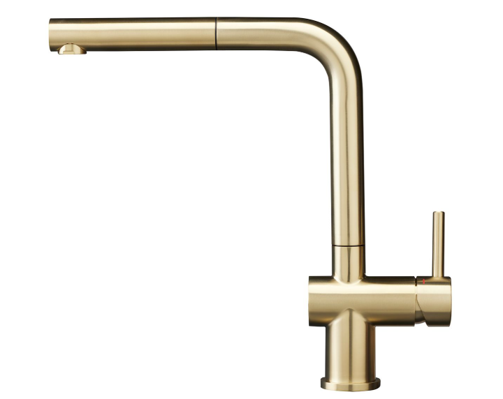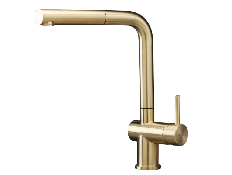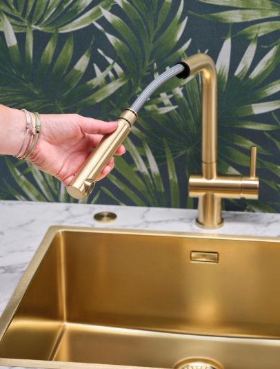 • Een eenhendel keukenkraan van PVD goud