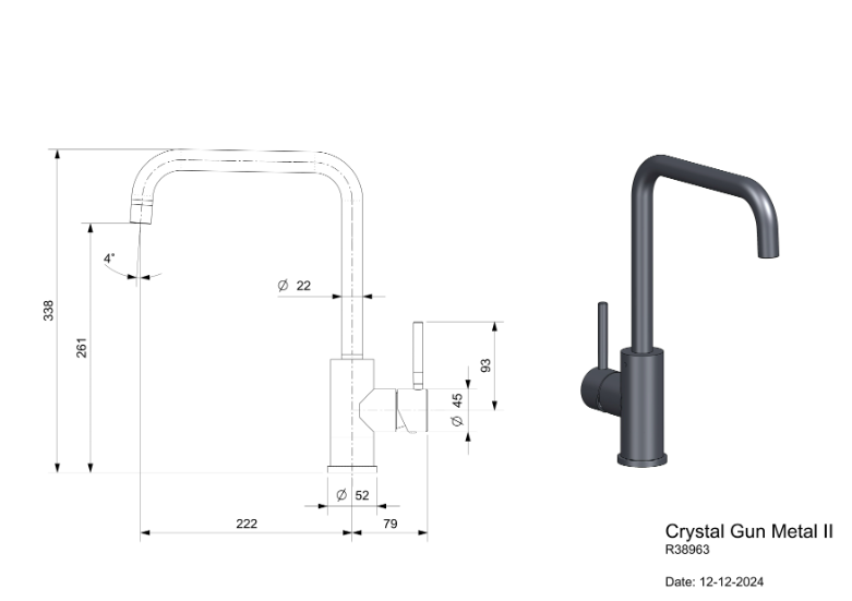 Reginox Crystal Gun Metal II R38963 Eenhendel Keukenmengkraan Gunmetal