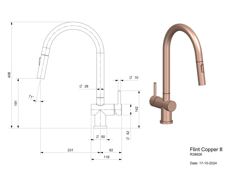 Reginox Flint Copper II R38826 Eenhendel Keukenmengkraan Copper Met Uittrekbare Handdouche