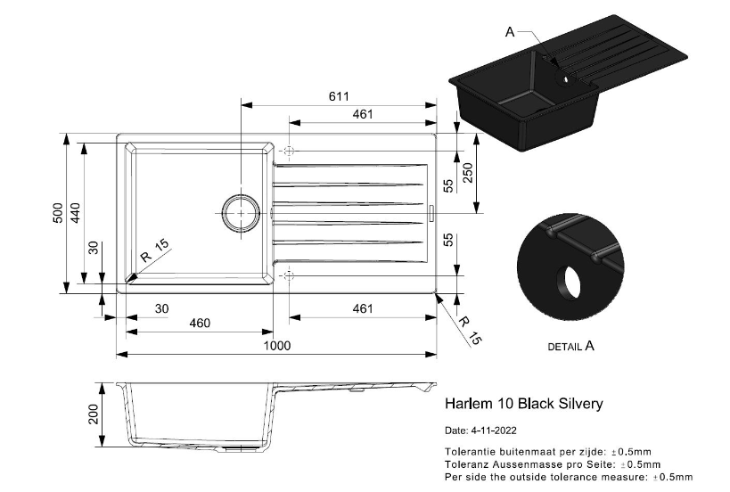 Totale afmeting: 1000 x 500 x 200 mm