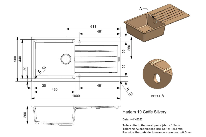 Totale afmeting: 1000 x 500 x 200 mm