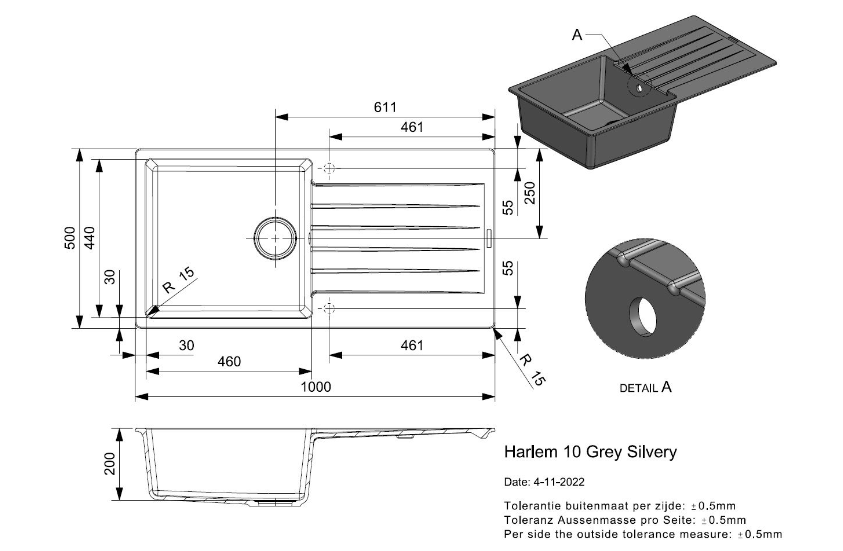 Totale afmeting: 1000 x 500 x 200 mm